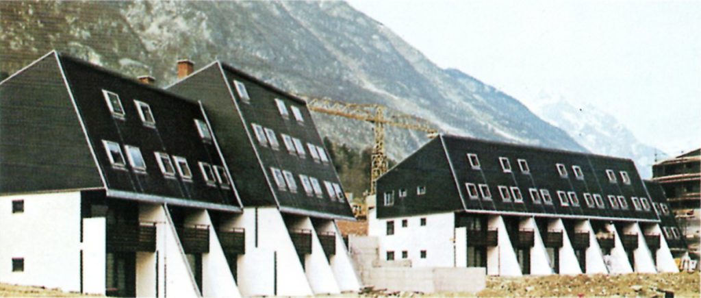 Zaradi močnega potresa v Furlaniji leta 1976, ki je imel katastrofalne posledice tudi v Bovcu oziroma v celotnem Posočju, so po francoskem zgledu zasnovali Kaninsko vas. Zgradili so jo po protipotresnem sistemu montažnih armirano betonskih konstrukcij (ABK). Arhitekturno delo je opravil Vladimir Filipič, statični projekt je naredil Peter Savnik, gradilo je podjetje SPG Nova Gorica.